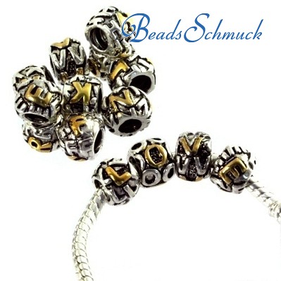 Ein Armband Modul Buchstabe in Kugelform wie im Bild aus 925 Sterling Silber mit Vergoldungen. original IMPPAC European Bead! Das Modul hat Gewinde innen.